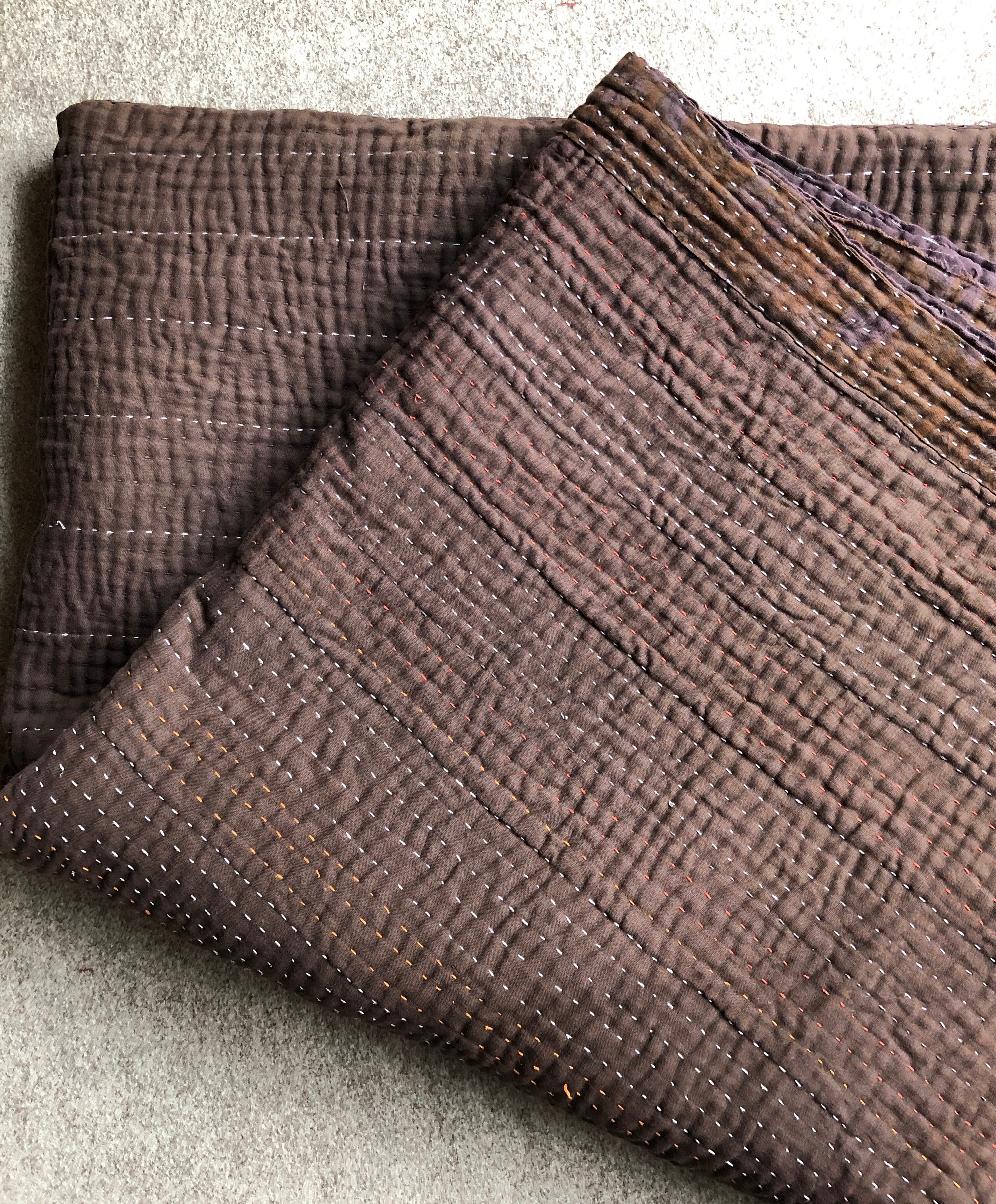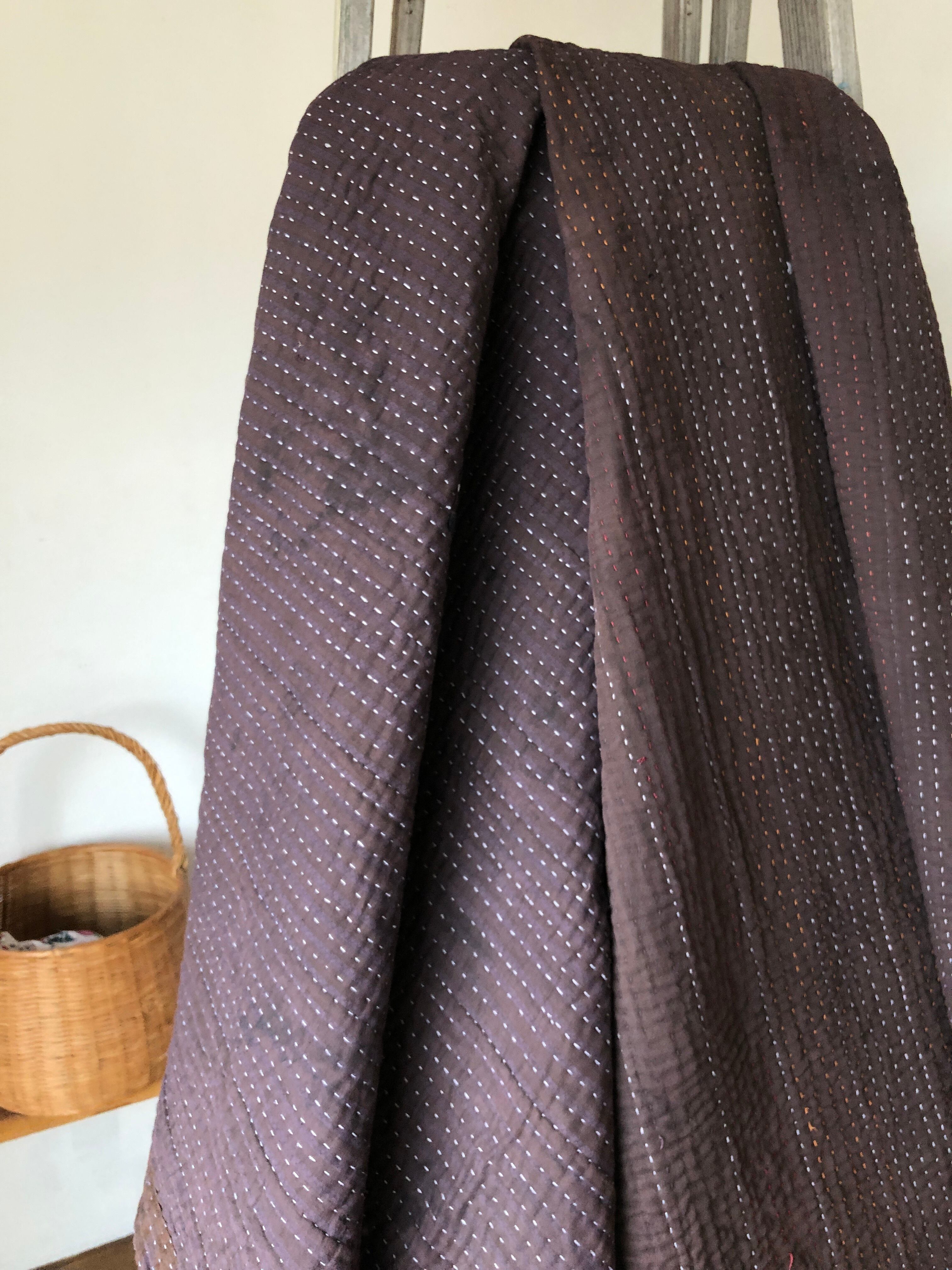 Vintage color stitch brown kantha quilt カラーステッチ ブラウンカンタキルト ラリーキルト