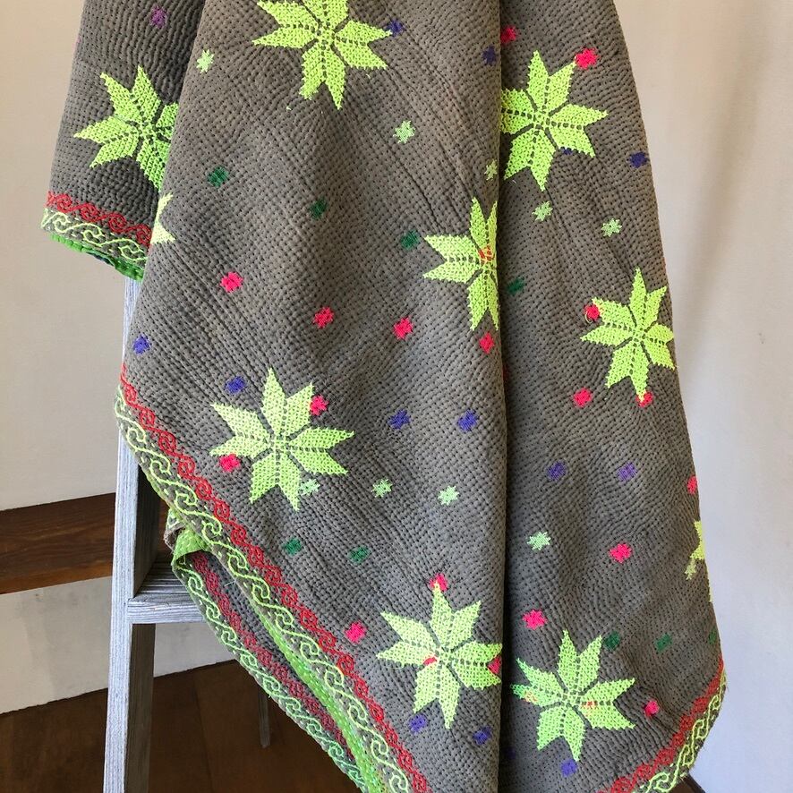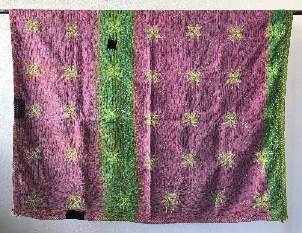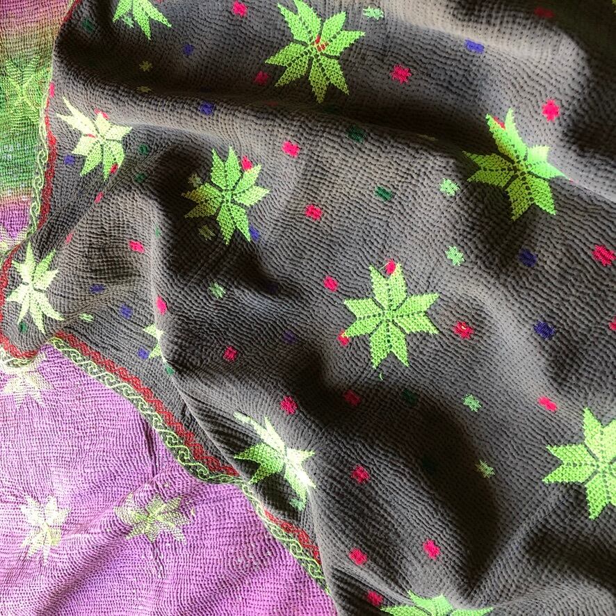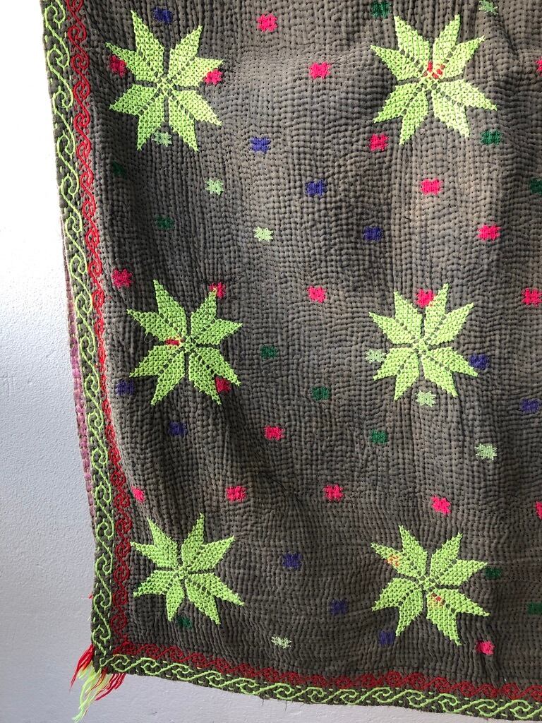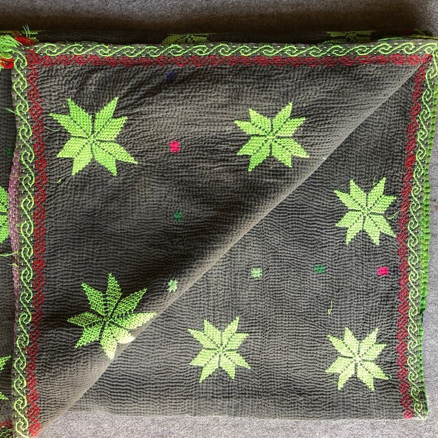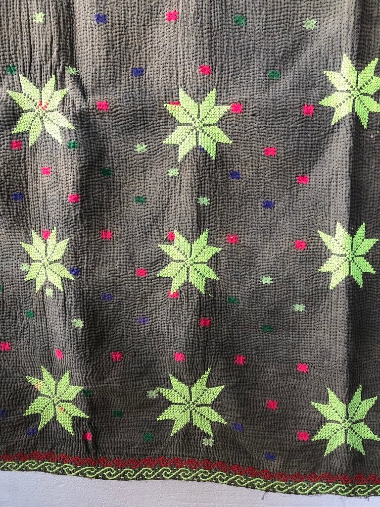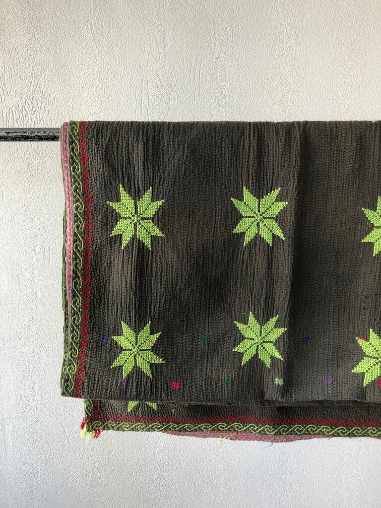 Vintage kantha quilt gray & yellow star ヴィンテージカンタキルトグレー&イエロースター ラリーキルト