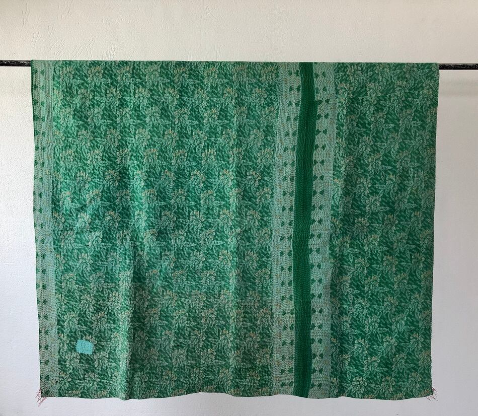 Vintage kantha quilt retro green ビンテージ カンタキルト レトログリーン
