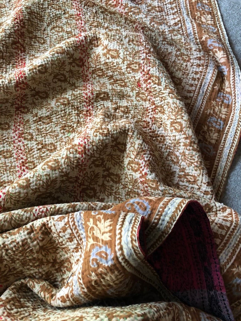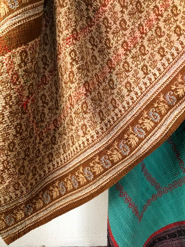 Vintage kantha quilt retro brown flower ビンテージ カンタキルト ブラウンフラワー