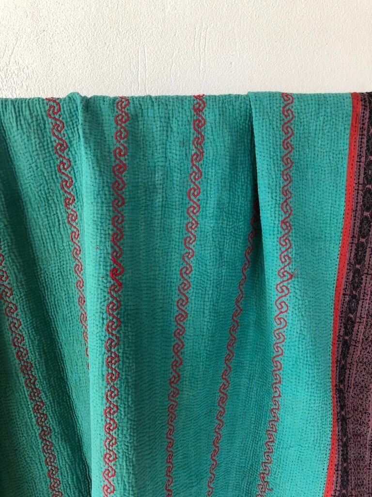 表側は鮮やかなグリーンに美しい刺繍が施されたカンタキルト
