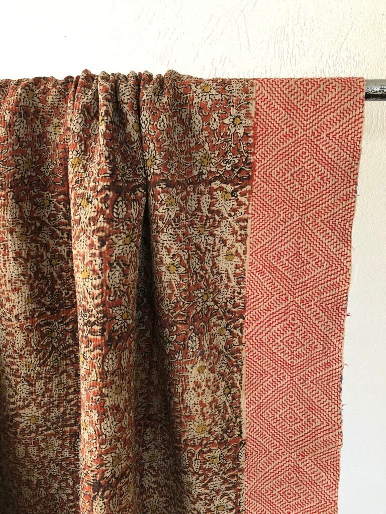 泥染ハンドブロックプリントヴィンテージカンタキルト。